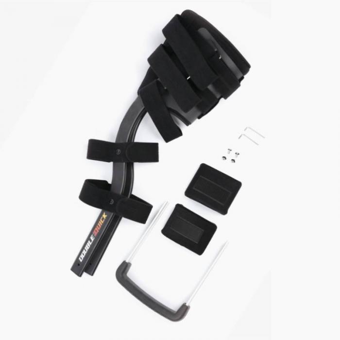 Comprend les composants essentiels : cadre de support, base de pied, sangles, coussinets en éponge, boulons à vis et clés hexagonales.